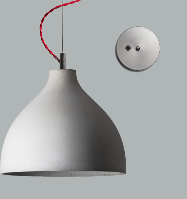 Maßgeschneidert auf ihr Umfeld abgestimmt, können die Lampenschirme in drei Größen und den Farben dunkelgrau, beton- und lichtgrau bestellt werden. Aber auch die Befestigung ist keine Hängepartie und kann nach persönlichen Vorstellungen zusammengestellt werden. Die (im Standard) zwei Meter langen Kabel sind in weiß und rot erhältlich, die Deckenbefestigung ist inklusive. Individuelle Sonderfarben für die Lampenschirme sind jederzeit möglich. Hier ist nichts in Beton gemeißelt. Spot on!